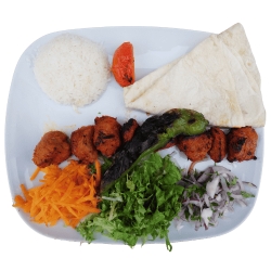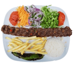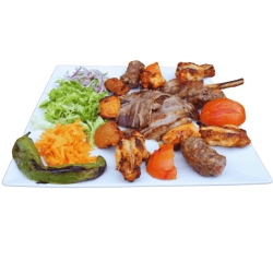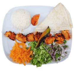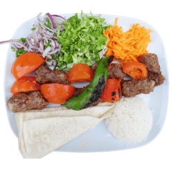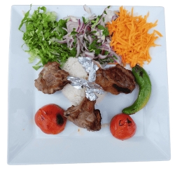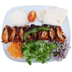 Doner, 3 ailes de poules, 1 brochettes kebab avec tomate, côtelette, 2 agneau