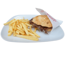 Galette de brochette de viande hachée, avec frites
