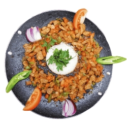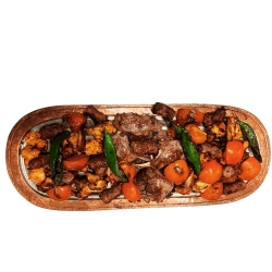 Agneau, tomates, oignons, poivron